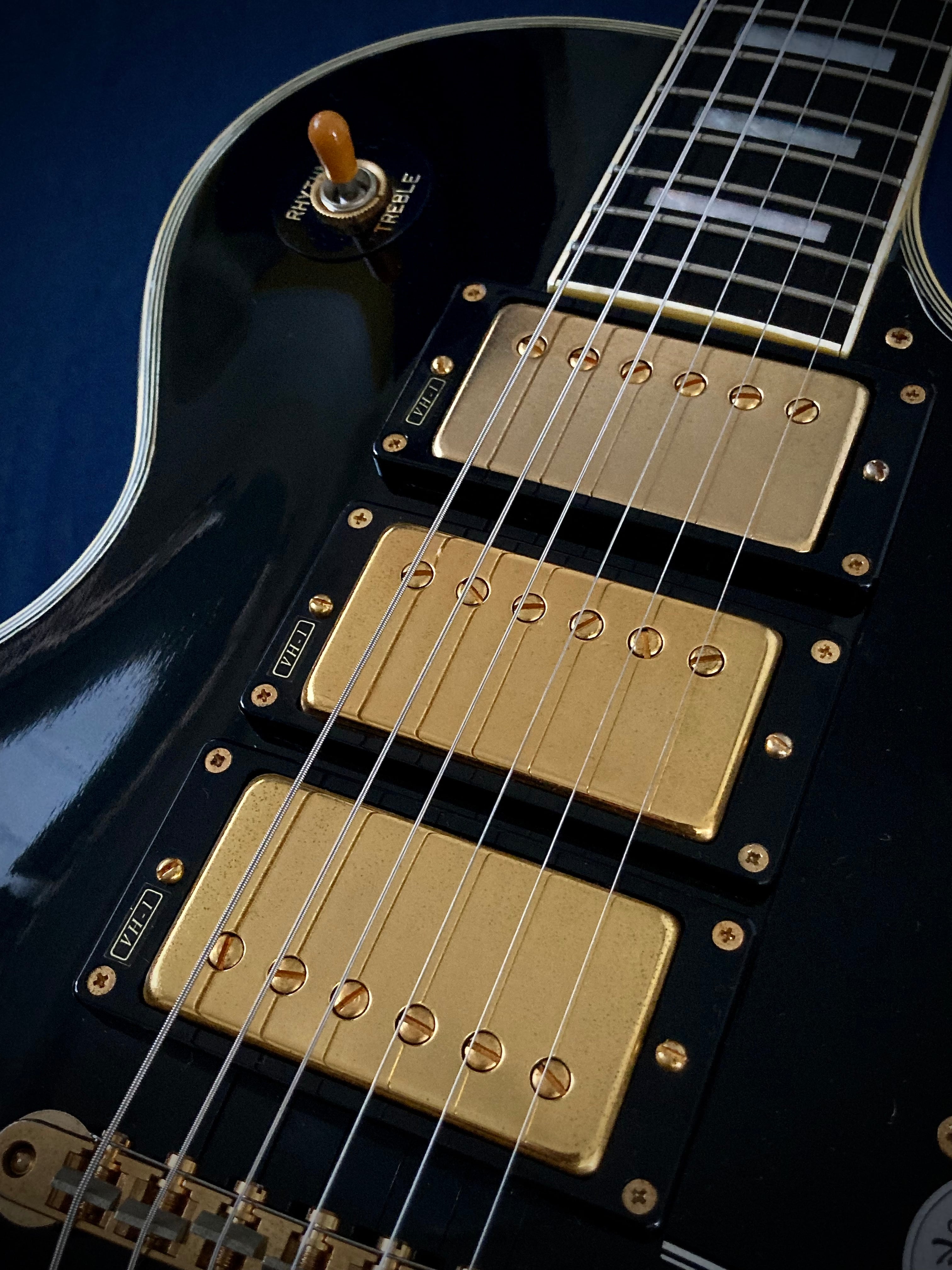 黒いボディにゴールドのパーツ、3基のピックアップは、バンドのラウドでダーティなイメージとマッチし、一躍トレードマークに。