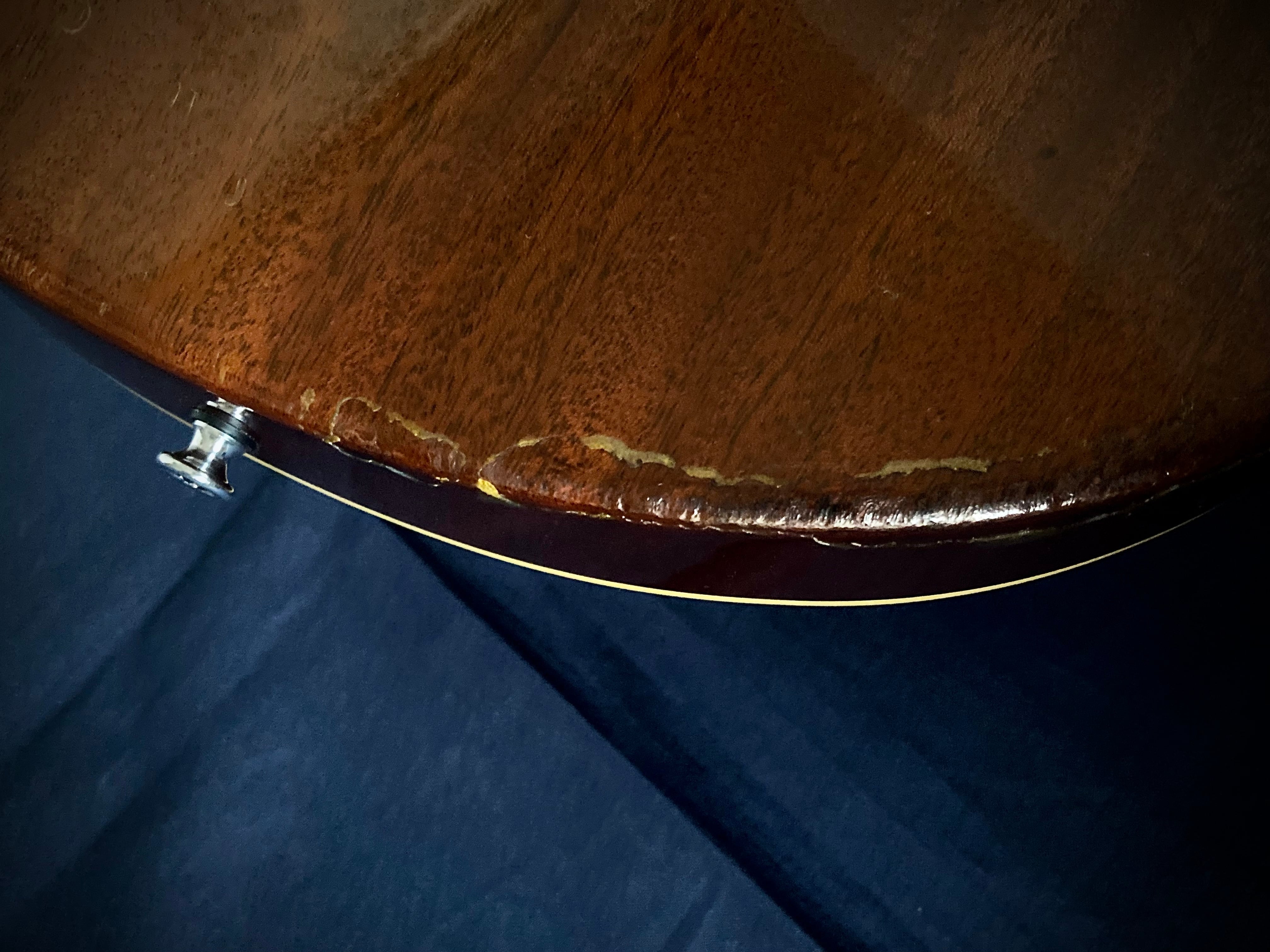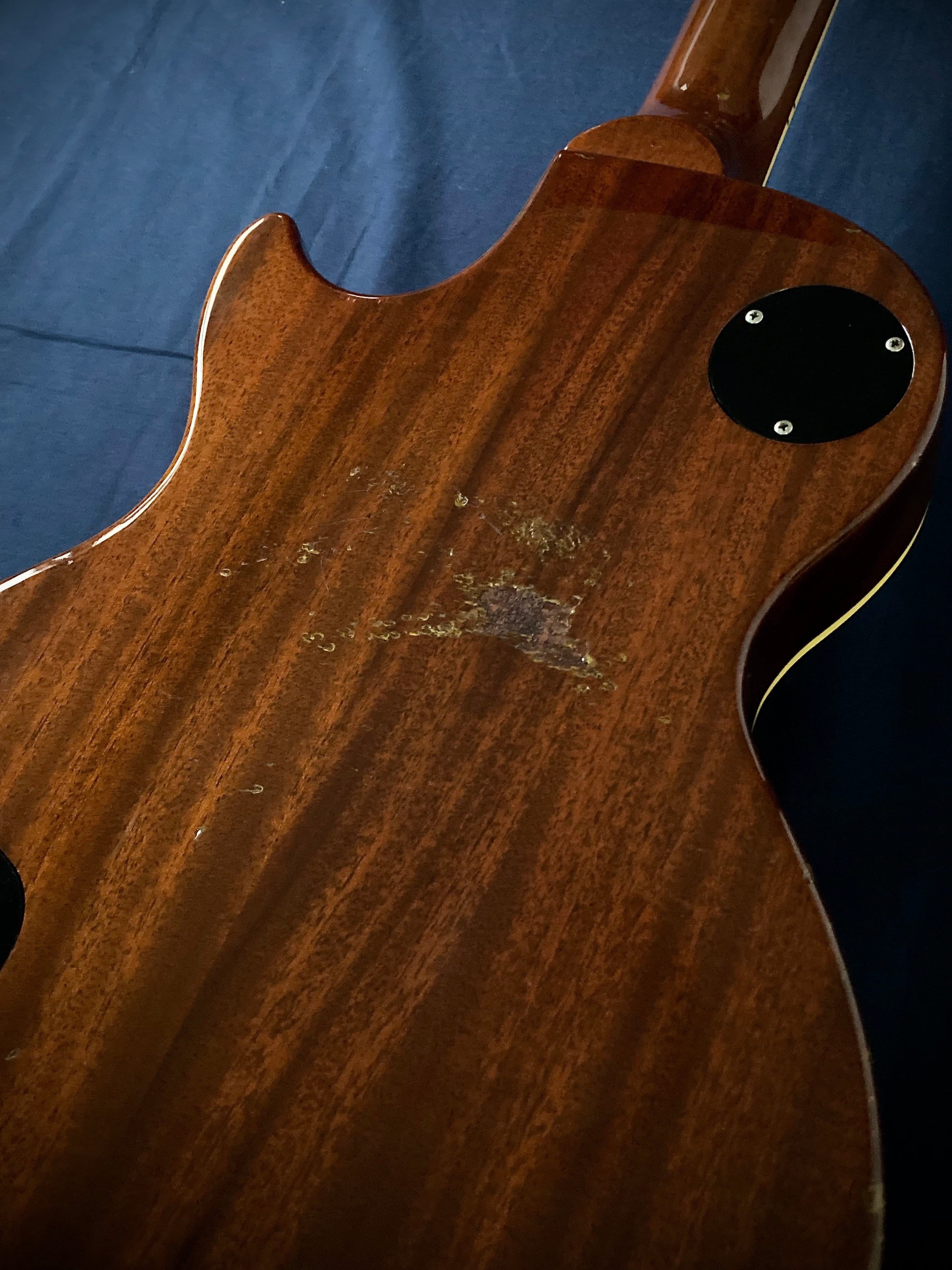 長く現場で使用されていたギターなので、ボディバックやエッジ部分にダメージがありますが