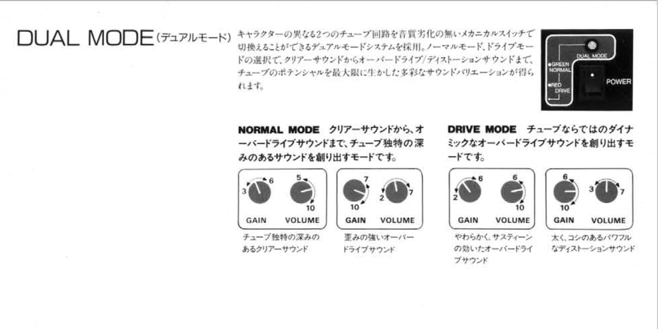20Wのアンプですが、DUAL MODEと2ボリューム仕様で幅のある歪みを楽しめます。