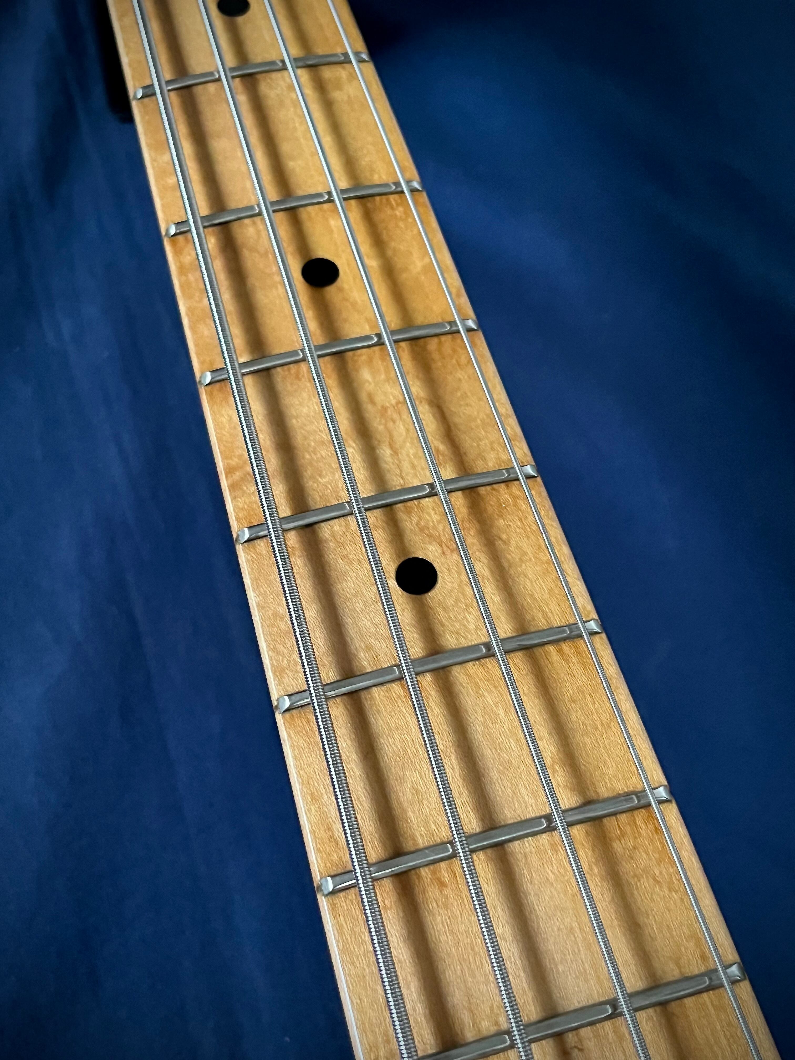 アノダイズドピックガードへ交換し、フラットワウンド弦を張れば、ウォームで粘りのあるジャズやモータウンサウンドも存分に味わえるでしょう。